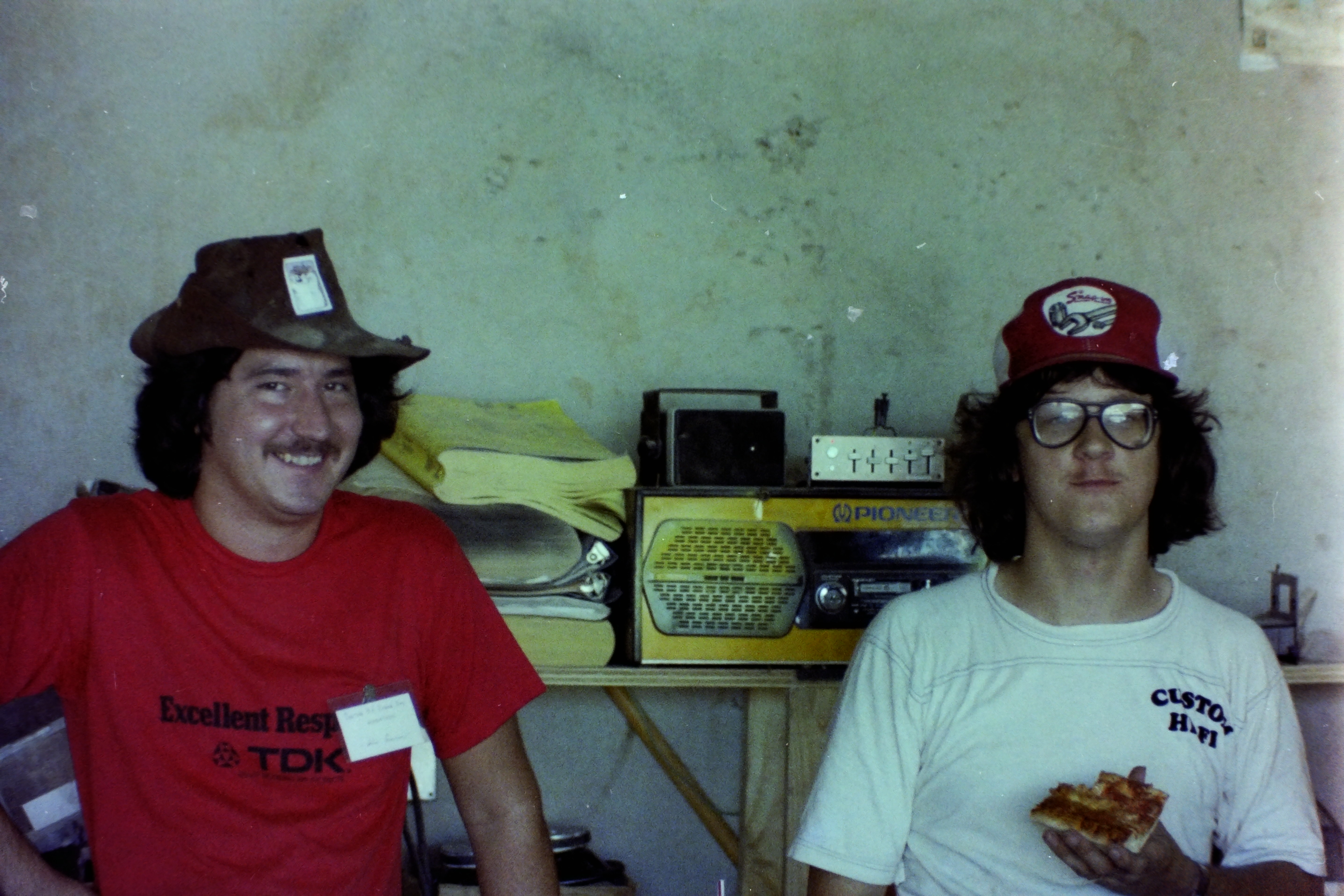 Eating Pizza with good buddy Jim Grimm at work (Car Trek)