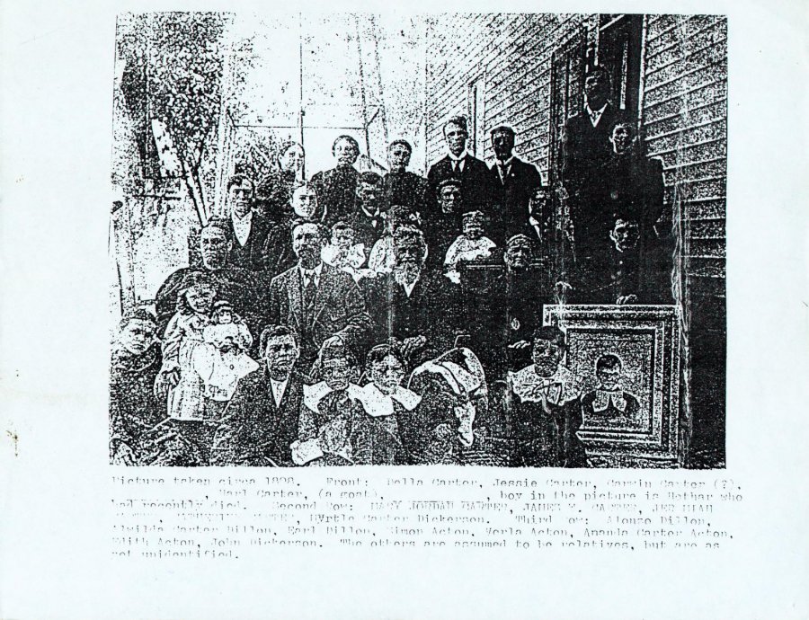 Third Row: Alonzo Dillon, Alwinda Carter Dillon, Earl Dillon, Simon Acton, Verla Acton, Amanda Carter Acton,Edith Acton, John Dickerson.